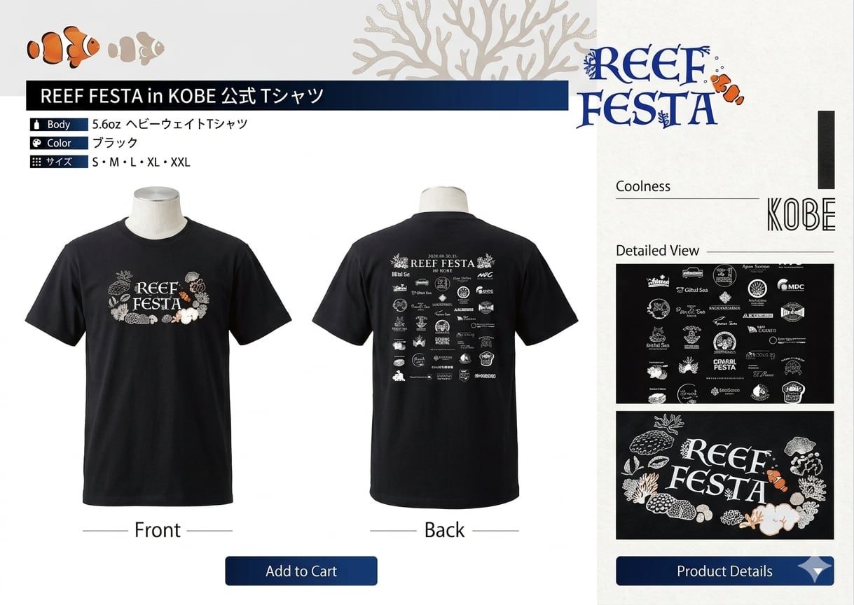 マリンアクアリウムイベント『REEFFESTA in神戸』の会場にて販売したしたオリジナルTシャツ。